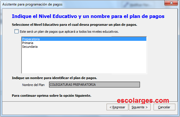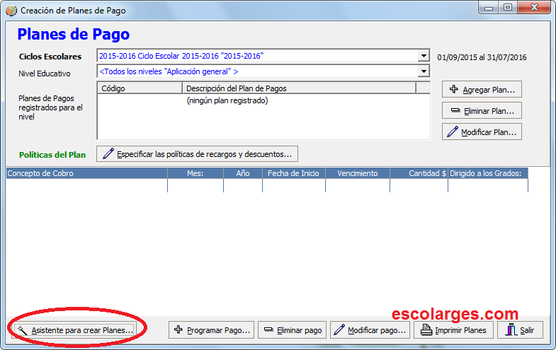 Escolar GES permite crear un númeo ilimitado de planes de pago con los
