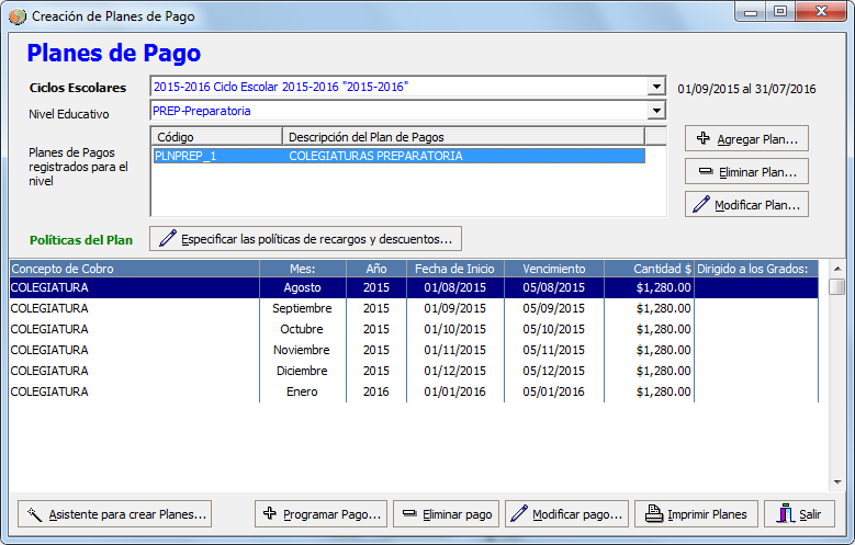 Es muy sencillo crear los planes de pago con el asistente automático,